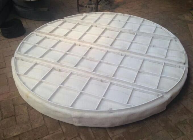 絲網除沫器主要是由絲網、絲網格柵組成絲網塊和固定絲網塊的支承裝置構成,絲網為各種材質的氣液過濾網,氣液過濾網是由金屬絲或非金屬絲組成。氣液過濾網的非金屬絲由多股非金屬纖維捻制而成,亦可為單股非金屬絲。該絲網除沫器不但能濾除懸浮于氣流中的較大液沫,而且能濾除較小和微小液沫,廣泛應用于化工、石油、塔器制造、壓力容器等行業中的氣液分離裝置中。